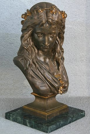 AIZELIN, Eugene-Antoine, (French, 1821-1902): ''Ophelia'', Silvered Bronze, 13 3/4''h. Condition: Some wear to patina.