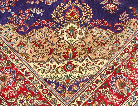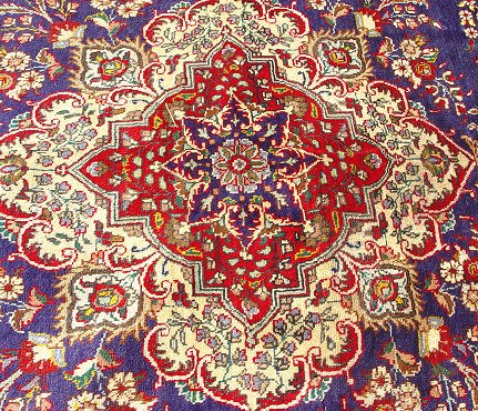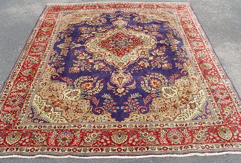 PERSIAN TABRIZ CARPET: Approx. 10'6'' x 8'4'', center medallion on blue ground with red border.