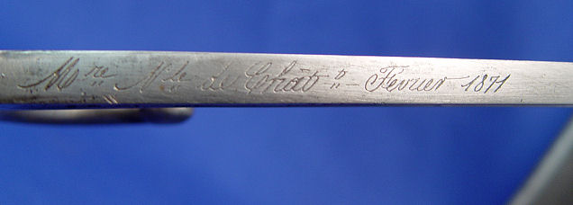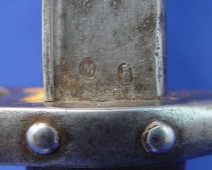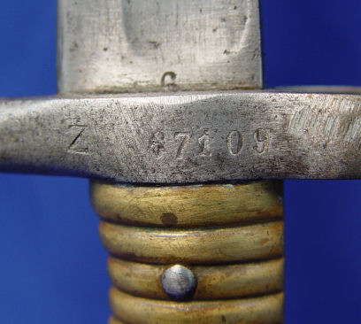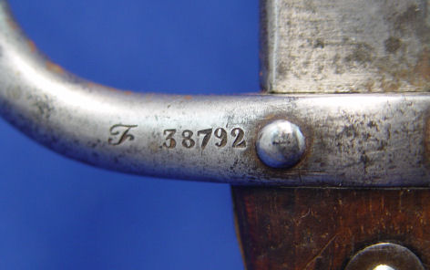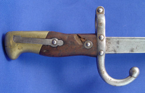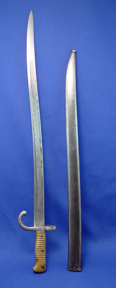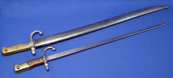2 FRENCH BAYONETS: One model 1874 Gras t-bone bayonet signed Mlle d'Ormes de St Etienne Juillet dated 1875, 20 1/2'' blade, 25 3/8'' overall. And Model 1866 Chassepot bayonet with scabbard. The bayonet and scabbard have matching serial numbers Z67109, top of bayonet signed Mlre Nle de Chat Fevier 1871, 22 1/2'' blade, 28''l. overall with scabbard.
