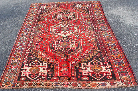 VINTAGE HAND WOVEN PERSIAN SHIRAZ RUG: 8'3'' x 5'1'' approx. size.