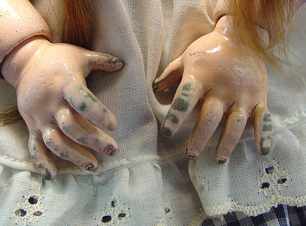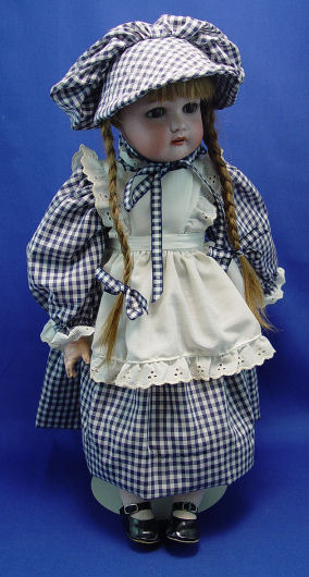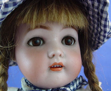 SIMON & HALBIG KAMMER & REINHARDT K*R GERMAN BISQUE HEAD DOLL: Mold #53. Beautiful complexion, sleepy brown eyes, open mouth with 4 teeth. Fully jointed, wood body. 19 ''h