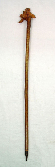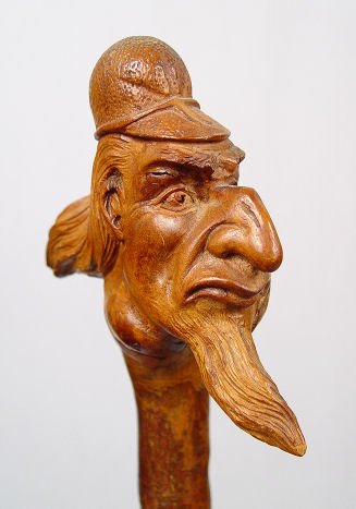 FOLK ART FIGURAL CARVED WALKING STICK: Carved in the form of a bearded head, metal tip, 36'' long.