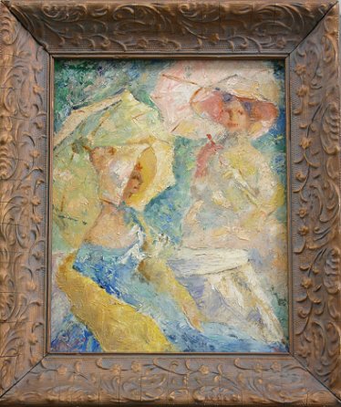 PRICE, Hartley, (American, 20th C.): ''Parasols'', O/C, 10'' x 8'', unsigned, embossed gilt frame.