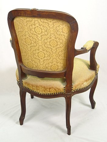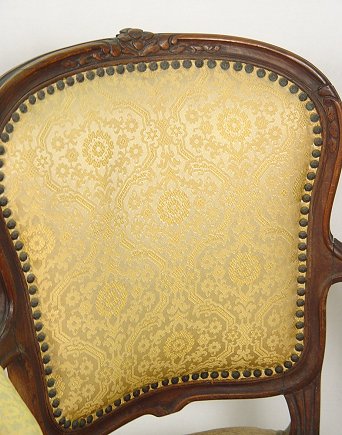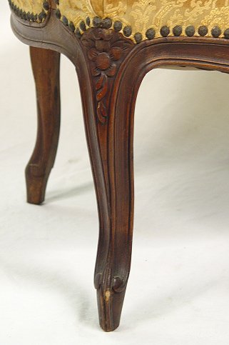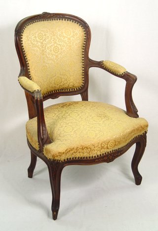 CARVED MAHOGANY FRENCH STYLE OPEN CHAIR: In gently worn condition.
