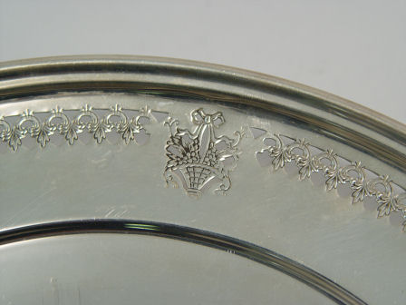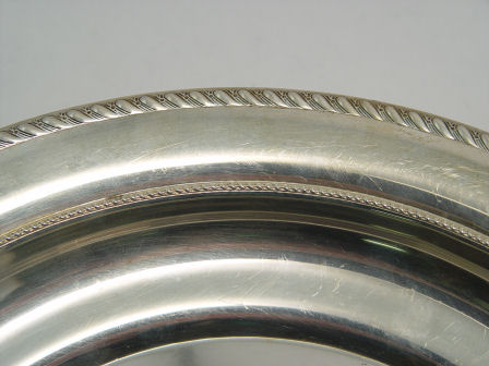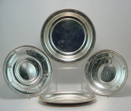 GROUP OF FOUR STERLING SALVERS / TRAYS: To include (1) Alvin deep dish, 11 5/8'' dia. (2)Alvin oval dish, 11 1/4'', (3) Mathews pierced rim tray, 10 1/2'' dia, and (4) Manchester round tray, 9 1/2'' dia.