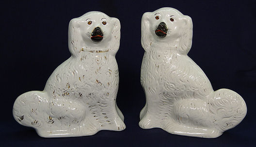 PAIR OF 19th C STAFFORDSHIRE DOGS: 13''h, hand painted gold and black accents. No chips or cracks.