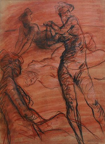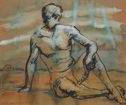 BENNETT, Frederick, (American, 20th C): Three piece art lot to include an Abstract figure of a man, W/C & Ink, 12 3/4'' x 15 1/4'', (2) Figural female studies, Colored Pencil, 21 1/2'' x 15 3/4'' and (3) an Abstract Composition, W/C & Ink, 23'' x 17 1/2''.