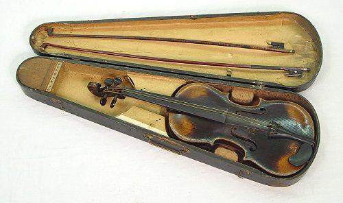 SIGNED STAINER VIOLIN WITH BOWS & WOODEN CASE: Stamped on the body ''Stainer''. Please call for condition.