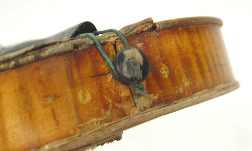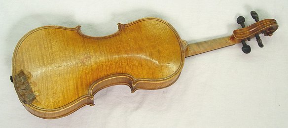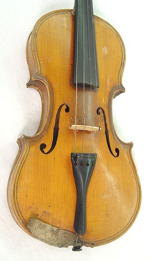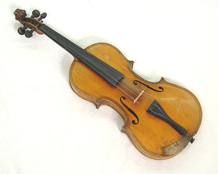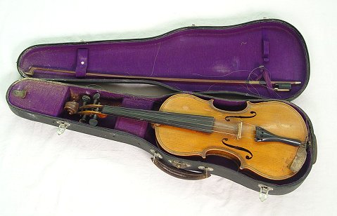 OLD VIOLIN AND BOW IN CASE: We know it is old from the label inside ''Repaired by E. Standish Oct. 20 1902 Gables Mich'' 24'' L, the body is 14''. Please call for condition.