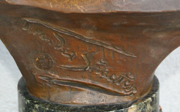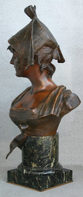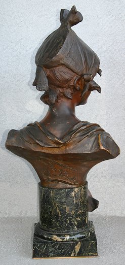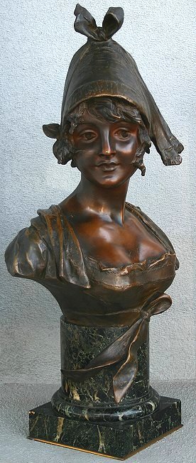 VAN DER STRAETEN, George, (Belgian, 1856-1928): Young Nouveau Maiden, Bronze, 23''h., affixed to a polished variegated green columnar plinth, signed and marked Societe Des Bronzes. Condition: Needs cleaning.