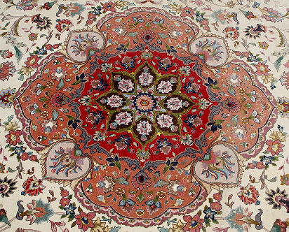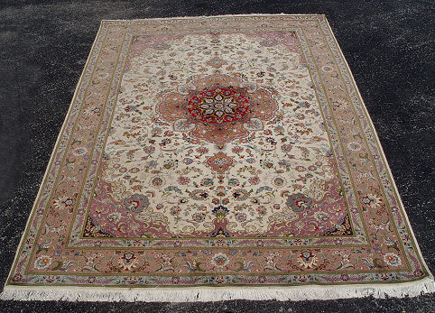VERY FINE HANDWOVEN CARPET: Approx. 9'9'' X 6'7'' in muted shades of lavender and greens.