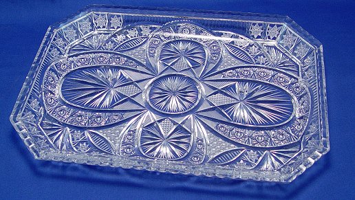 CUT GLASS TRAY: 15'' x 11'' x 1 1/2''.