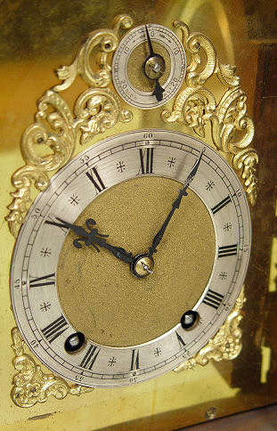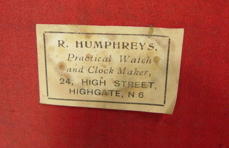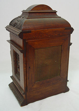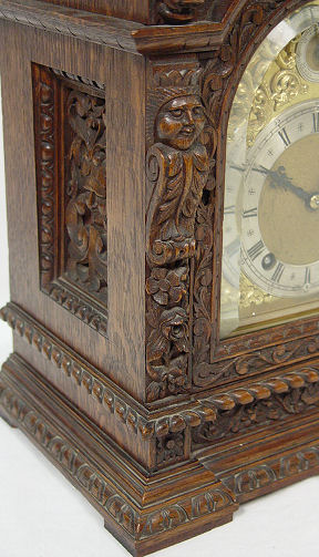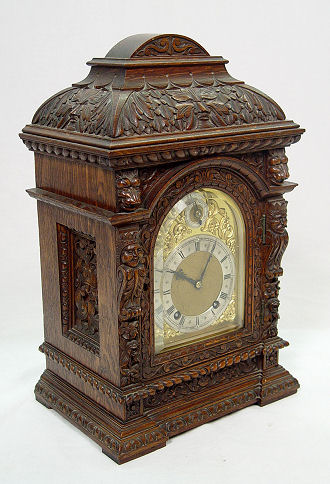 ENGLISH CARVED OAK BRACKET CLOCK: Key wind brass works are signed W & H, the door panel bears a label from R. Humphrey Practical Watch and Clock Maker, 17 1/2'' X 10'' X 7''. Key and pendulum included. Est. $1600/1800**