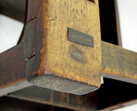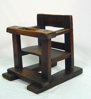 PRIMITIVE EARLY WOODEN CHILD'S CHAIR: Mortise & tenon hand constructed. 16 1/2''h.x 18'' x 13''.