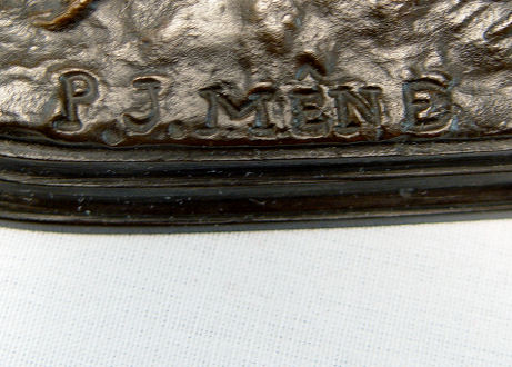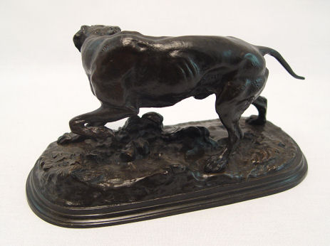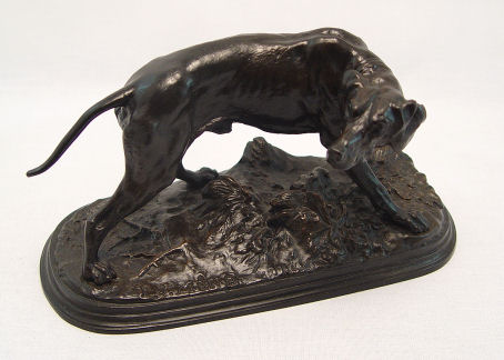 BRONZE HUNTING DOG AFTER P.J. MENE: Probably 19th century, incised signature to base, good casting, 4 1/2'' h. x 9'' w.
