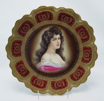 ROYAL VIENNA AMOROSA PORTRAIT PLATE: Gold crown and beehive mark. Also marked ZS & G Bavaria. 9 3/4'' dia.