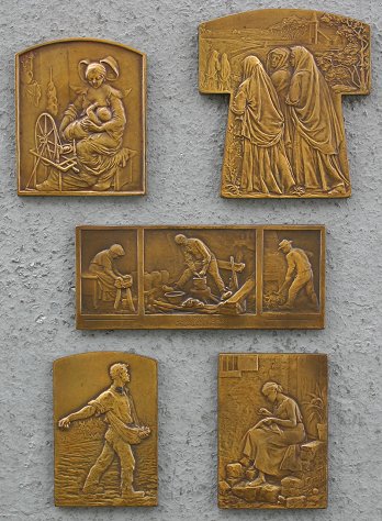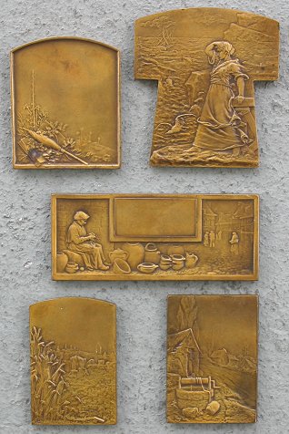 COLLECTION OF FIVE MINIATURE PERIOD ART MEDALS: Artists included in the lot are Pierre Lenoir, G. Prud'Homme, Blanche Moria, Rene Baudichon and J.P. Legastelois. All pieces are 2 sided.