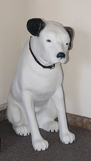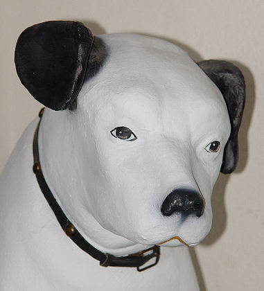 HUGE OLD KING COLE PAPER MACHE RCA VICTOR NIPPER DOG: 32''H. large RCA Victor Nipper Dog made of paper mache by the Old King Cole Company of Canton Ohio. Good solid condition, repainted, original collar.