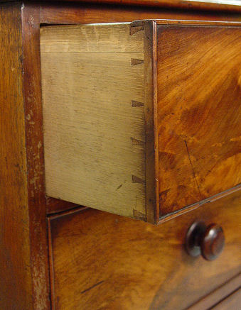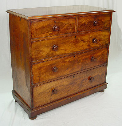 HANDSOME SCOTTISH MAHOGANY CHEST: Two drawers over three, each drawer framed in molding, substantial wood knobs, bun feet. 45 1/2''h. x 48'' x 21 1/2''. Est. $1400/1600**