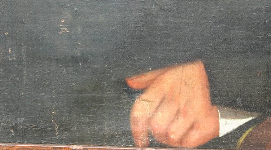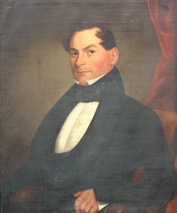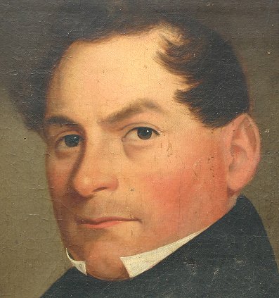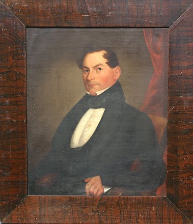 19TH CENTURY AMERICAN SCHOOL PORTRAIT OF A GENTLEMAN: Strongly resembling the work of Samuel Morse or Chester Harding, O/C, 29 1/2'' x 24 1/2'', no visible signature, encased in faux grain painted frame, 39'' x 34'', abrasions throughout with restoration. Condition - Relined with several visible patches verso, inpaint throughout, craquelure throughout, needs work. Sold as is. Est. $1500/2500**