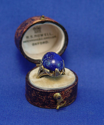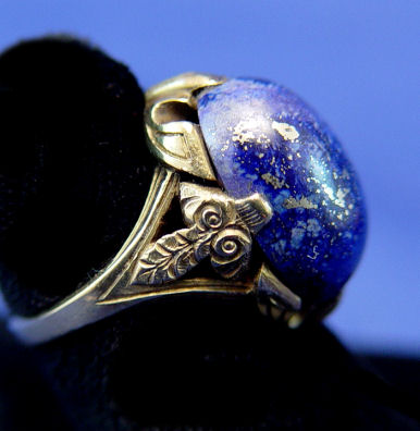 14 K ROSE GOLD AND LAPIS LAZULI LADIES RING: Unique rose gold mounting, sold with it's original period leather case.