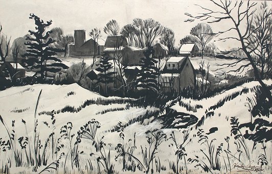 LEVER, Hayley, (American, 1876-1958): ''West Caldwell'', Wash Drawing, 13 3/4'' x 21 1/4'', signed lower right, titled verso. Condition - Scattered abrasions throughout the center of the piece, some water damage in the lower right corner, vertical crease running through from the center.