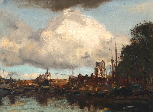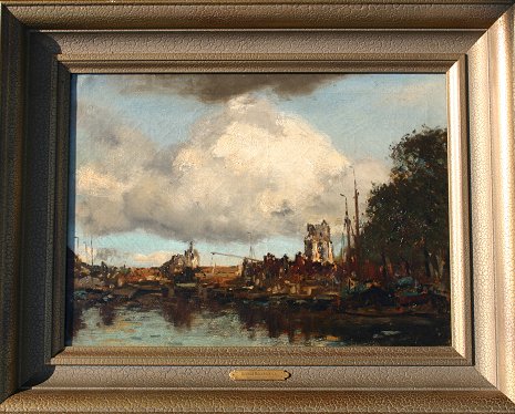 BOGERT, George, (American, 1864-1944): Busy European Port, O/C, 15'' x 20 1/2'', no visibly signature, purchased from the estate of Bogert's grandson, encased in antiqued gilded frame with minor repair, 21 1/4'' x 26 3/4''. Condition - Craquelure throughout.