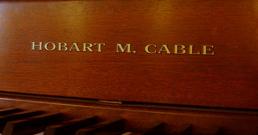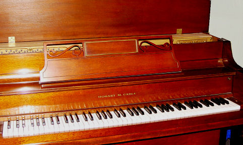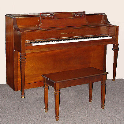 HOBART M. CABLE MAHOGANY CASE SPINET PIANO AND BENCH: Sheraton style legs on the piano and matching bench. Serial number 424970 indicates ca. 1967-69. 38''h, x 57 1/2''w. x 23 1/2''.