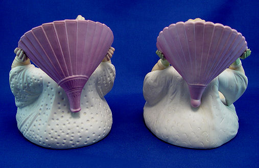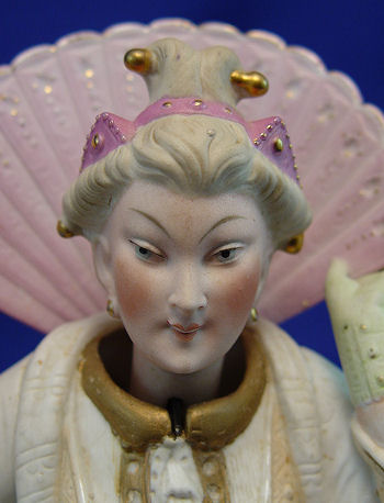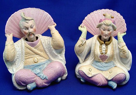 PAIR OF BISQUE NODDERS: Eastern influenced man and woman figures. Nice detail. No visible marks. 6 3/4''h, 6''w.