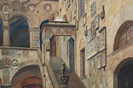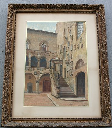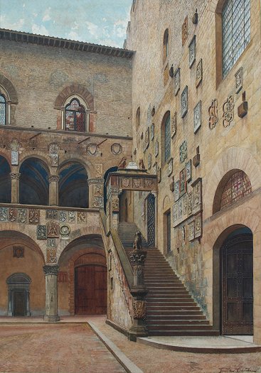 CECCHI, Giulia, (Italian, 19th/20th C): ''Cortile De Bargello, Florence'', W/C, sight size 22'' x 15 1/2'', signed lower right, superior detail and quality. Condition - There is some faint browning to paper in the sky.