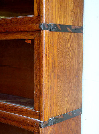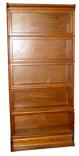 GOLDEN OAK GLOBE WERNICKI FIVE SECTION STACKING BOOKCASE: Stamped ''Globe Wernicki'' 75''h. x 34'' x 11'' at the base.