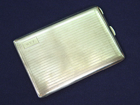 TIFFANY STERLING CIGARETTE CASE: Tiffany & Co. sterling silver cigarette case with the letters ''W.V.T.'' monogrammed in the upper left hand corner. Marked Tiffany & Co. on the inside with gold wash interior. Measures approximately 4 1/2'' l x 3 1/8'' w.