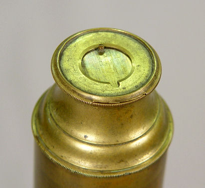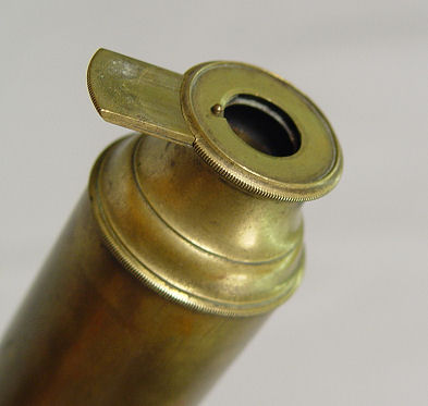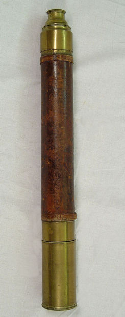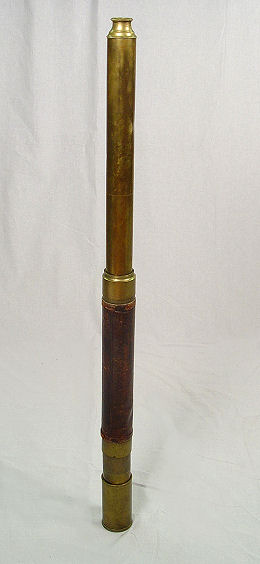 ANTIQUE BRASS AND LEATHER TELESCOPIC TELESCOPE: Brass plate sliding lens covers. Opens from 20 1/2'' to 36''l.