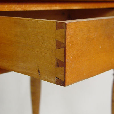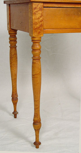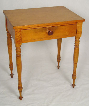 TIGER MAPLE ONE DRAWER WORK STAND: Legs and sides are curly tiger maple, the top and drawer are maple. 28''h. x 24'' x 18''.