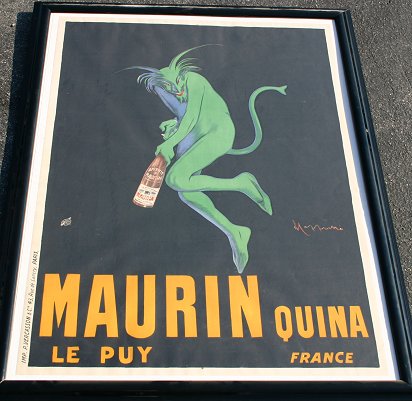 CAPPIELLO, Leonetto, (French, 1875-1942): ''Maurin Quina'', Poster, 61'' x 44 1/4'', encased in contemporary black lacquer frame with wear, 59'' x 52 3/4''. Condition - Several abrasions, folds and creases not easily visible, several repaired tears, most notably in the margins. Serious inquiries please call!