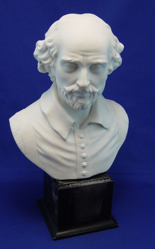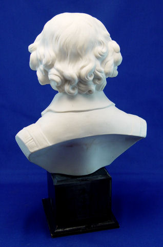 VERY GOOD PARIANWARE BUST OF SHAKESPEARE: Copeland quality, no visible marks, affixed to a later damaged black painted plinth, Shakespeare measures 11'' h.