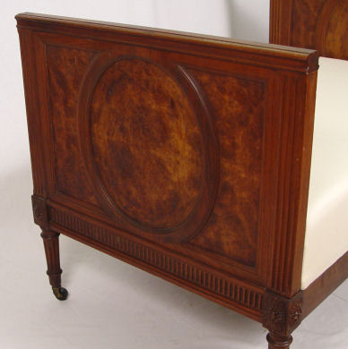 DIMINUTIVE LOUIS XVI STYLE DAY BED: Mahogany frame, reeded legs ending in brass casters. 27''h. x 40''l, x 25''. The cushion is 16'' from the floor.
