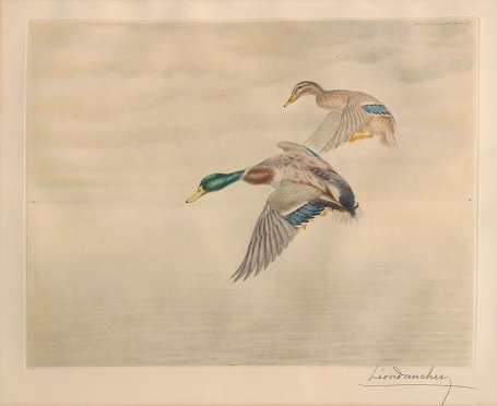 DANCHIN, Leon, (French, 1887-1939): Ducks in Flight, Etching, 17 3/4'' x 21 3/4'', SLR, wooden frame, 30 1/2'' x 34 1/2''.