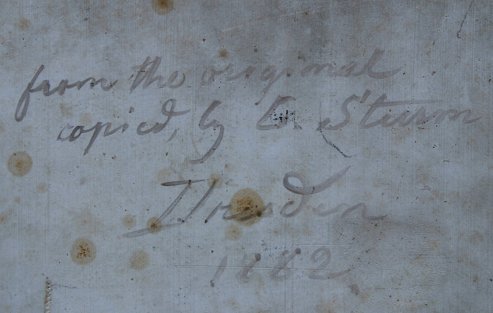 FANTASTIC KPM PLAQUE: 19th C. copy by Sturm, 16'' x 12'', later frame, 20'', 16'', impressed mark verso, written Dresden, 1882, copied by G? Sturm.