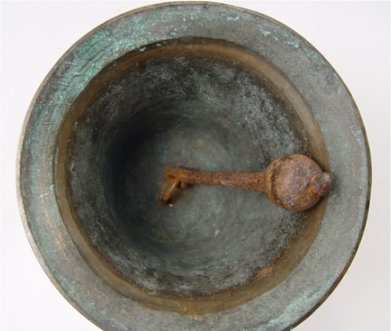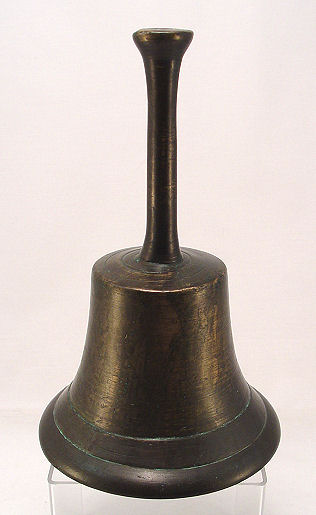 EARLY TOWN CRIER BELL: Brass ? with original iron clanger, 10''h.