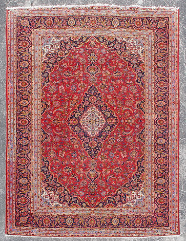 SEMI-ANTIQUE PERSIAN CARPET: Approx. 12'8'' x 9'6'', hand knotted, red ground.