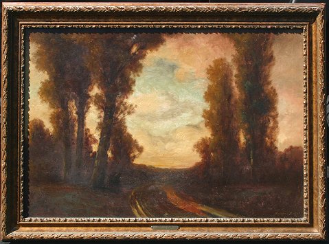 BOOTH, Franklin, (American, 1874-1948): ''End of Day'', O/C, 24'' x 36'', SLR, newer frame, 29 1/2'' x 41 1/2'', titled verso.
