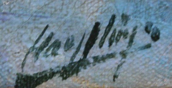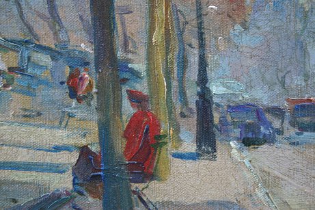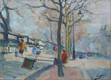 ARTISTS PAINTING ALONG THE SEINE?, O/C, PARIS?: 9 1/2'' x 13'', illegibly signed LR, antiqued carved framed, 16 1/2'' x 20''. Est. $300/500**