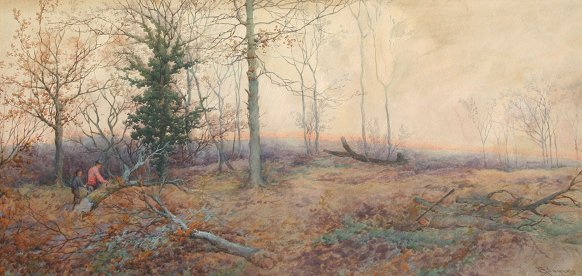 BOWERS, Stephen J., (British, 19th/20th C): Autumnal Pastoral Scene With Figures, W/C, 9'' x 19'', SLR, fine newer frame and mat, 21'' x 31''. Est. $400/600**