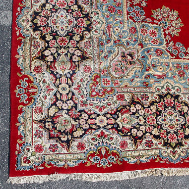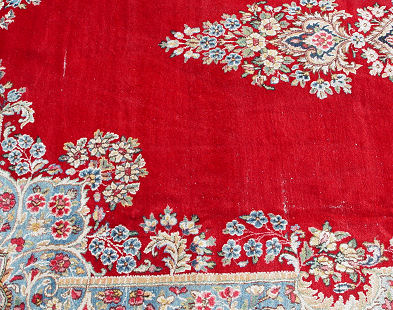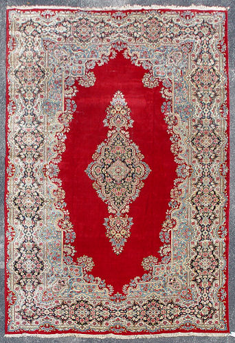 PALATIAL ORIENTAL CARPET: Approx. 10' x 16' 1/2'', vibrant ruby red with multi colored floral design to medallion and wide border.