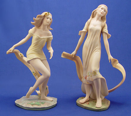 PAIR OF LASZLO ISPANKY LIMITED EDITION FIGURINES FOR GOEBEL: ''Summer Sun'', #'d 188/600, 11''h. and ''Autumn Hue'' #'d 17/600, 12 1/4''h. No damage noted.