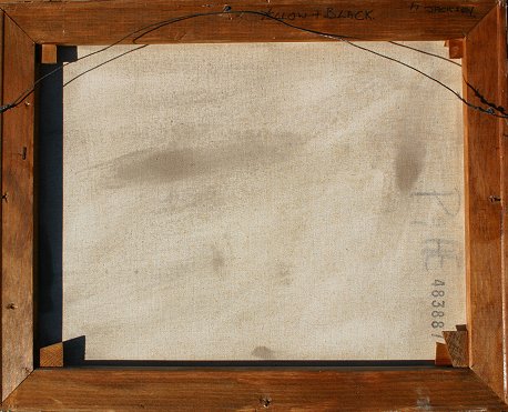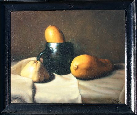 JACKSON, Al, (American, 20th C.): Still Life, ''Yellow and Black'', O/C, 16'' x 20'', SLR, titled verso, black frame with wear, 19 1/4'' x 23 1/4''.