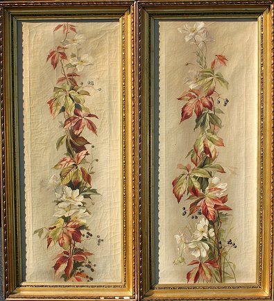 GRANGER, William Daniel, (American, 20th C.): Pair of Victorian Flowered Vine Studies, O/Cs, 14'' x 36'', worn gilt frames, 18'' x 40'', unsigned.
