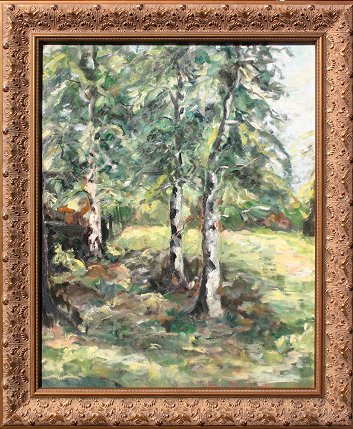 IMPRESSIONIST O/CB BIRCH TREE LANDSCAPE: 30'' x 24'', fine newer frame, 36'' x 30'', no visible signature.