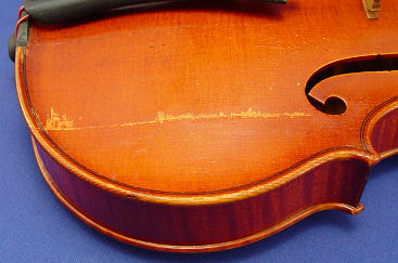 FINE 1922 VIOLIN HEINRICH HEBERLEIN JR. LABEL: Sold with a notarized 1974 appraisal from Woodbridge Music Corporation, Woodbridge Virginia, for $3,000. The appraisal also states in their opinion this is a genuine example of this maker (will e-mail copy on request). Flame or curly maple two piece back, the front has seams or cracks with a worn finish. 23''l.